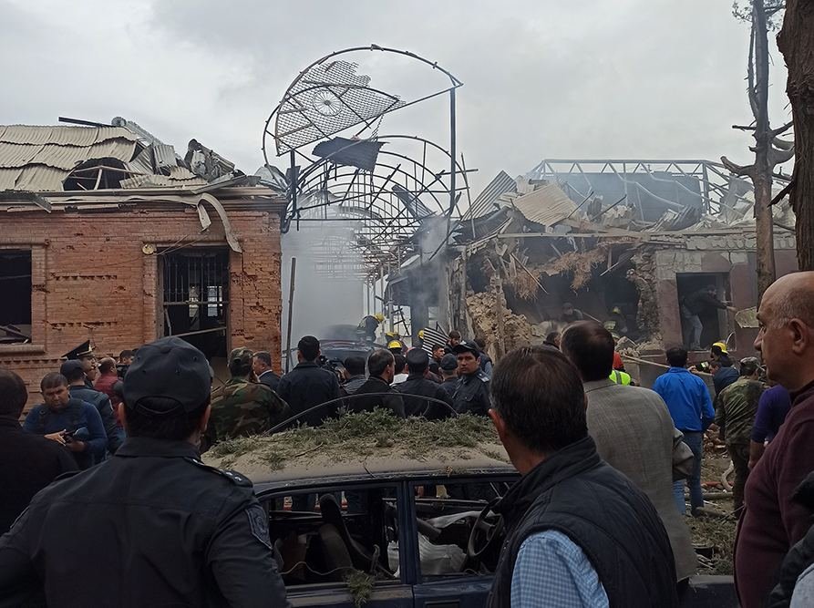 2020-ci ilin oktyabrın 4-də səhər saat 10 radələrində ermənilərin atdığı raketlər Azərbaycanın ikinci ən böyük şəhərində mülki yaşayış məntəqəsinə, o cümlədən sakinlərin yaşadığı ikimərtəbəli binaya, həmçinin fərdi yaşayış evlərinə düşmüşdü. Nəticədə 1 mülki şəxs şəhid olmuşdu, 39 mülki şəxs isə yaralanmışdı. Yaşayış evləri ilə yanaşı mülki infrastruktura və qədim tarixi tikililərə ziyan dəymişdi.