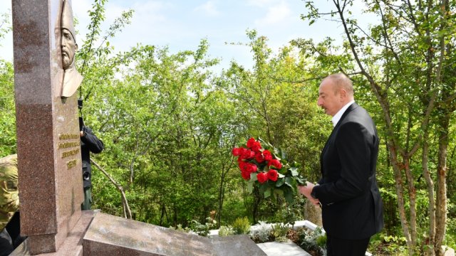 Prezident İlham Əliyev Cıdır düzündə Mir Möhsün Nəvvab Qarabağinin məzarını ziyarət edib