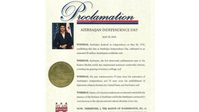 Vaşinqton meri Azərbaycanın Müstəqillik Günü ilə bağlı Bəyannamə imzalayıb