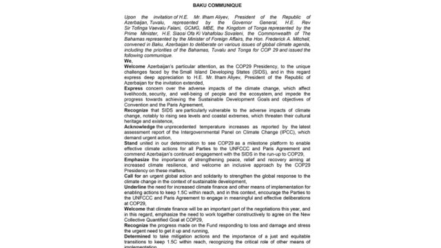 Tuvalunun general-qubernatoru, Tonqa Krallığının Baş naziri və Baham Adaları Birliyinin xarici işlər naziri Bakı Kommünikesini qəbul ediblər