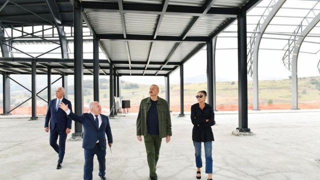 Prezident İlham Əliyev və Birinci xanım Mehriban Əliyeva Laçın Hava Limanında tikinti işlərinin gedişi ilə tanış olublar