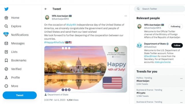 XİN: Azərbaycanla ABŞ arasında əməkdaşlığın daha da dərinləşəcəyinə ümid edirik