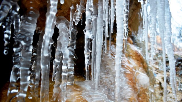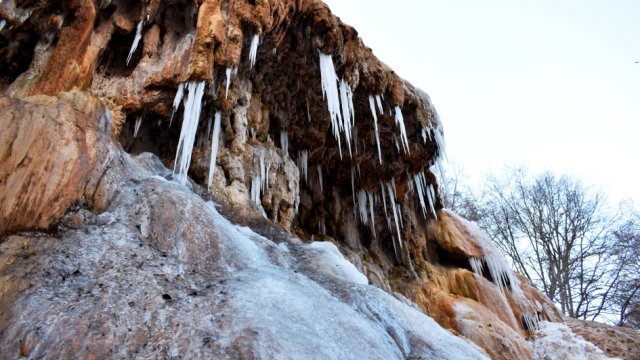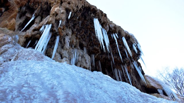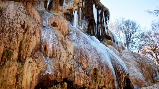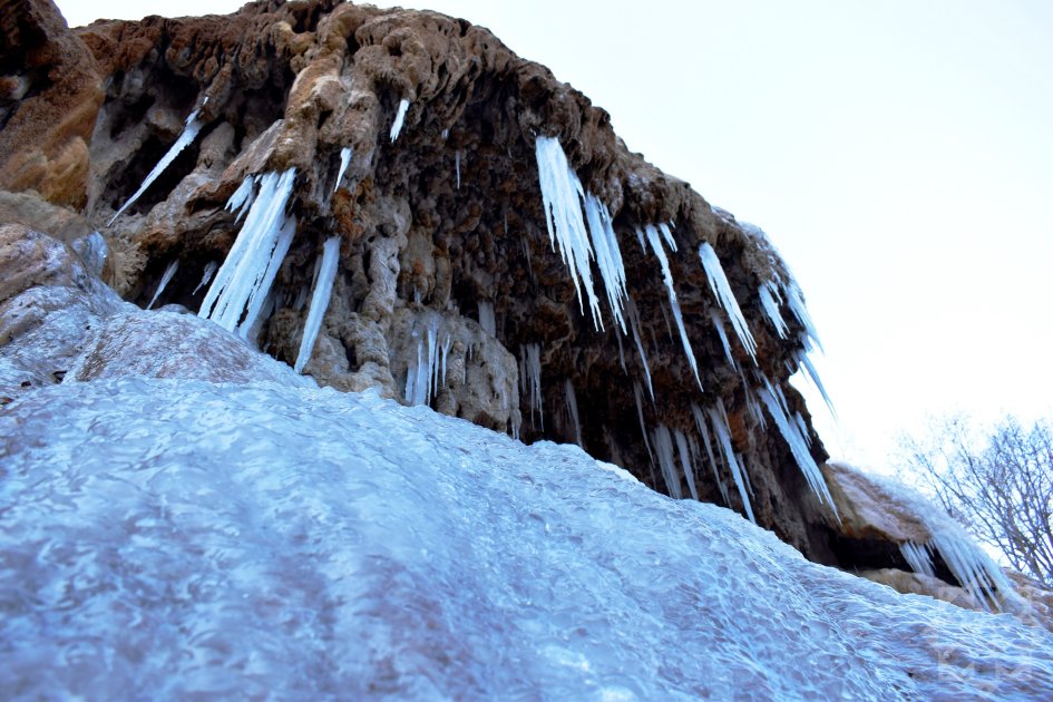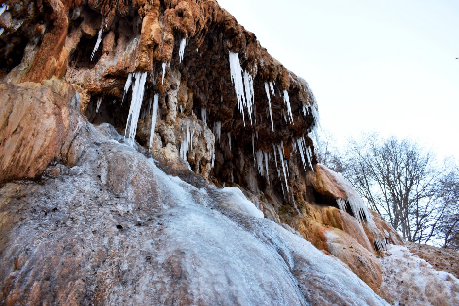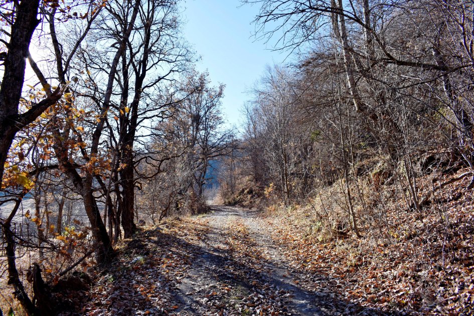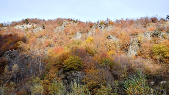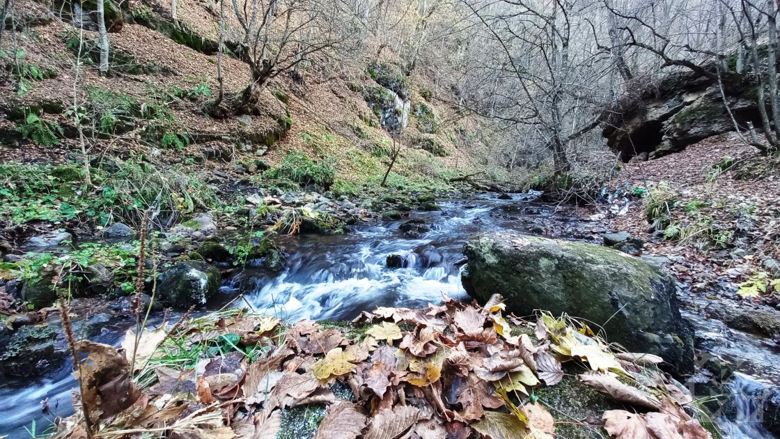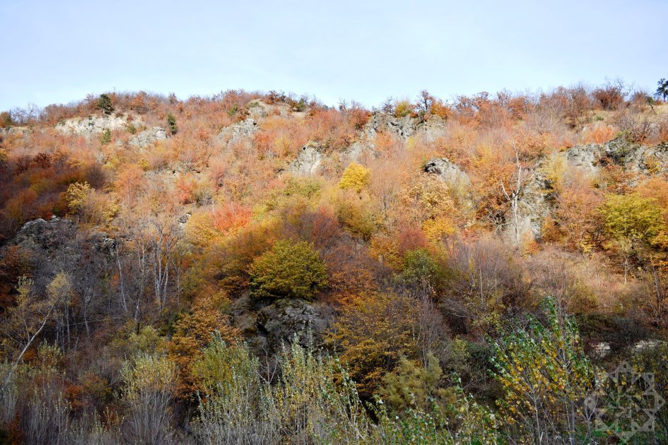 Günəşli payız günü olsa da, artıq indidən qışın nəfəsi hiss edilir. Meşələrdəki xəzanın qızılı sarı rəngləri, çayın şırıltısı və bir hissəsi donmuş dağ şəlaləsi füsunkar təbiət harmoniyası yaradır.