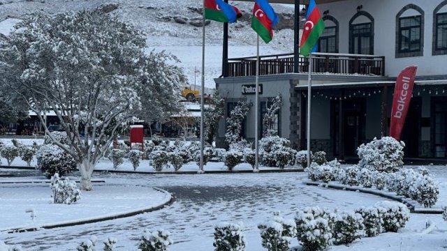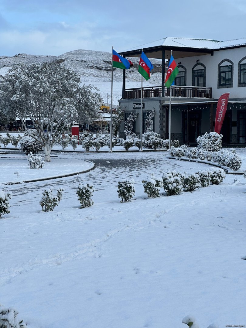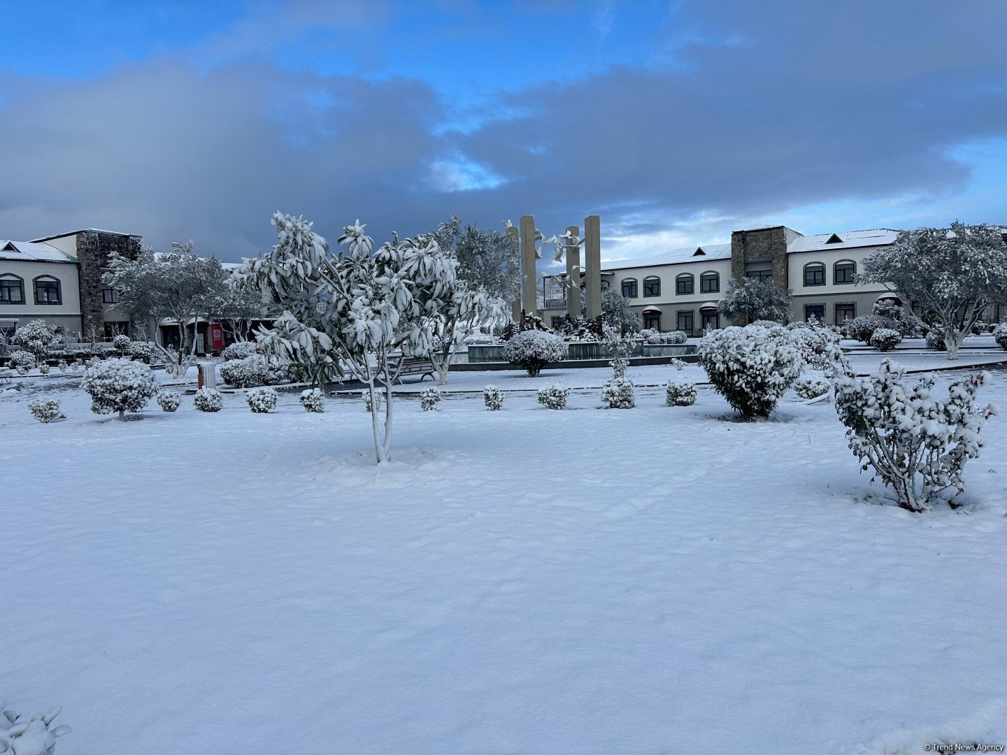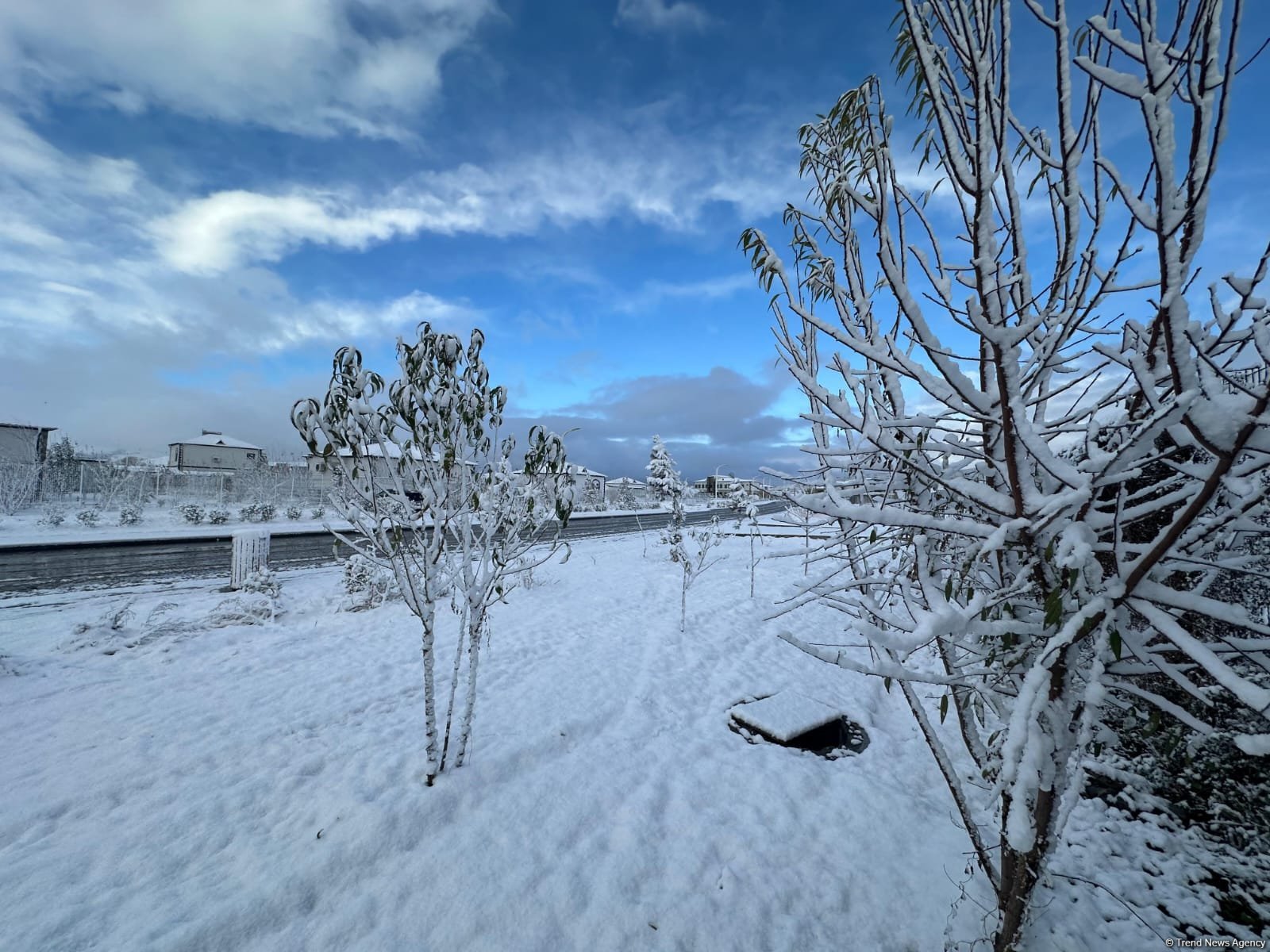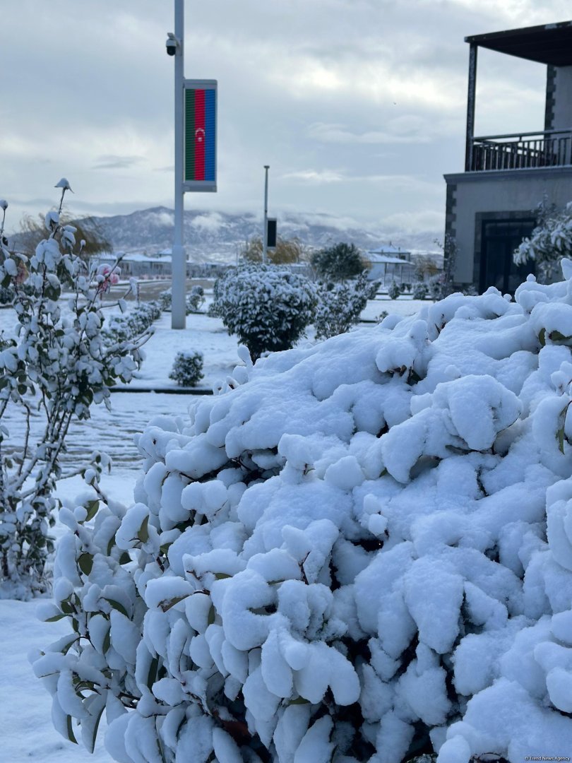 Trend-in bölgə müxbiri xəbər ki, səhər saat 5 radələrindən yağmağa başlayan qar qısa müddətdə ətrafı ağ örpəyə bürüyüb.