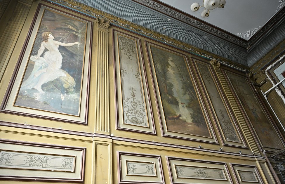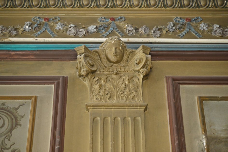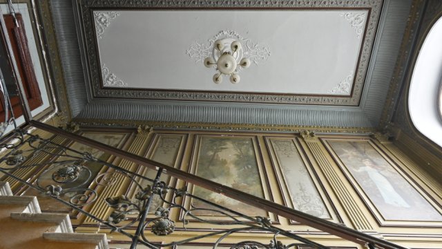 Lakin binanın əsas cazibəsi onun daxili hissəsindədir – illər keçsə də gözəlliyini qoruyub saxlayan naxışlı tavanlar, suvenirlər və freskalarla bəzədilmiş geniş giriş zalı.