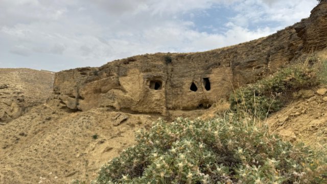 Əhəngdaşı divarlar bir-birinə hamar keçidlərlə birləşən bir neçə otaq əmələ gətirəcək şəkildə oyulub. Mağaraların mənşəyi ilə bağlı bir neçə fərziyyə mövcuddur. Onlardan birinə görə, burada qədim insanlar yaşamış ola bilər. Digərinə görə, mağaralar müdafiə istehkamları kimi xidmət edib və insanlar burada sığınacaq tapıblar. Ən inandırıcı görünən fərziyyə dərvişlərlə bağlıdır. Ehtimal edilir ki, əvvəlcə təbii oyuqlar mövcud olub, sonradan isə onlar genişləndirilib və tənhalıqda mənəvi məşğələlər üçün uyğunlaşdırılıb.