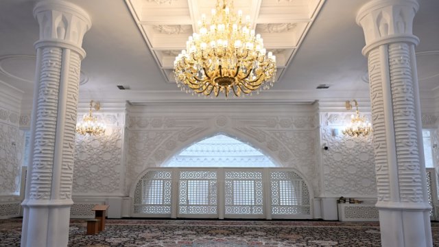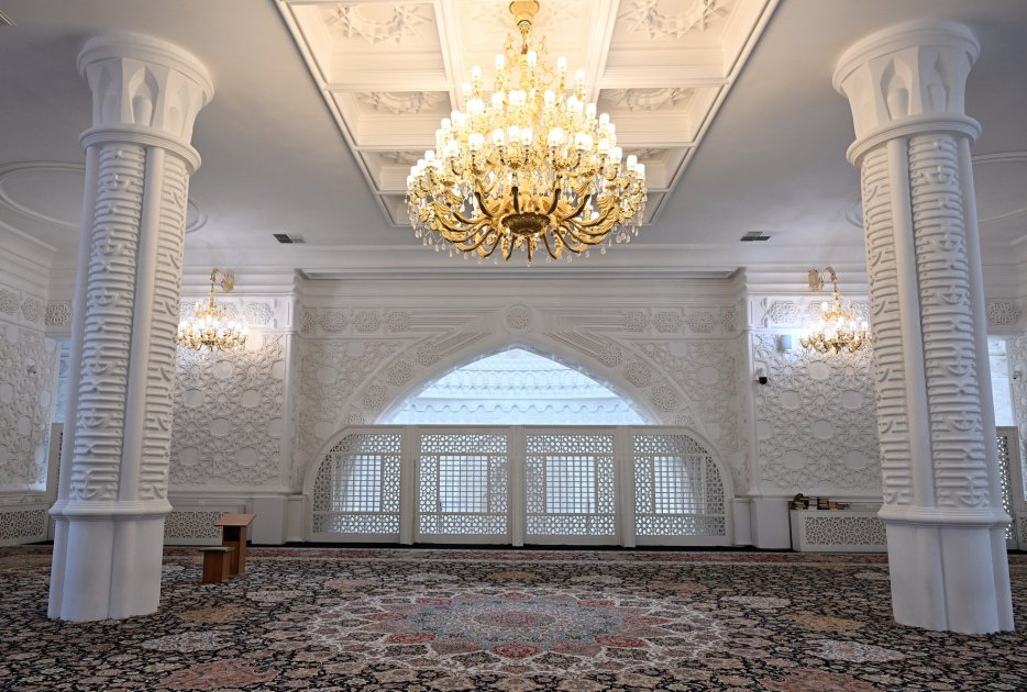Böyük namaz zalında İslam üslublu həndəsi ornamentlər, daş oyma və ərəb kalliqrafiyası harmonik bütövlük yaradır. Yuxarı mərtəbələrdə qadınlar üçün ayrıca namaz salonları, Quran tədris sinifləri və kitabxana bölmələri yerləşir.