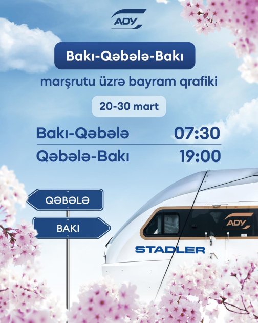 Qeyd edək ki, bayram günlərində Bakı–Qazax–Bakı, Bakı-Balakən-Bakı, Gəncə-Qəbələ-Gəncə marşrutları, eləcə də martın 21-28-də Bakı-Ağdam-Bakı marşrutu ilə ənənəvi qrafik üzrə reyslər icra olunacaq.