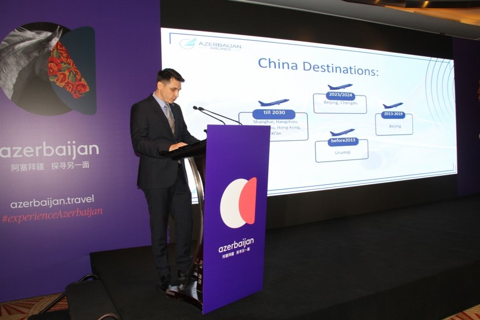 “Azərbaycan Hava Yolları” (AZAL) QSC-nin nümayəndələri Ruslan Abdullayev və Rinat Əzizov ölkəmizin milli aviadaşıyıcısı haqqında məlumat verib, şirkətin dekabrda açılacaq Bakı-Pekin-Bakı birbaşa, müntəzəm uçuşlarının iki ölkə arasında turist səfərlərinin sayının çoxalmasına müsbət təsir edəcəyini, AZAL-ın qarşıdakı illərdə Çinin daha bir neçə şəhərinə birbaşa uçuşlar açmağı planlaşdırdığını diqqətə çatdırıblar.