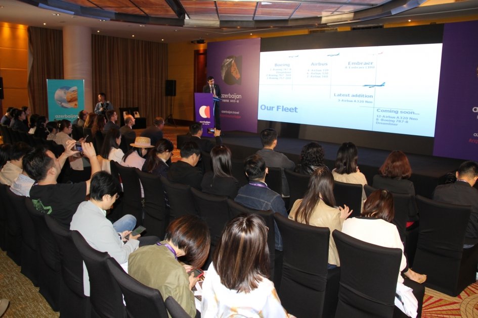 Sonra Azərbaycanın turizm potensialını, ölkəmizin təbii gözəlliyini, tarix-mədəni irsini, dadlı mətbəxini əks etdirən video nümayiş olunub, AZAL-ın keçirdiyi lotereyanın qalibinə Pekin-Bakı-Pekin bileti təqdim edilib.