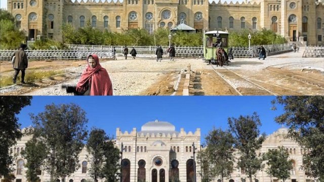 Yüz qırx yaşlı “Tiflis” vağzalının binası qarşısındakı meydan füsunkar görünüşdə