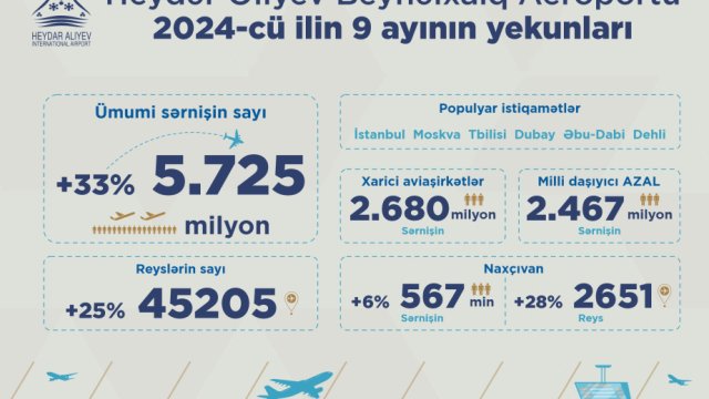 Bakı hava limanında sərnişin daşınması 33 faiz artıb