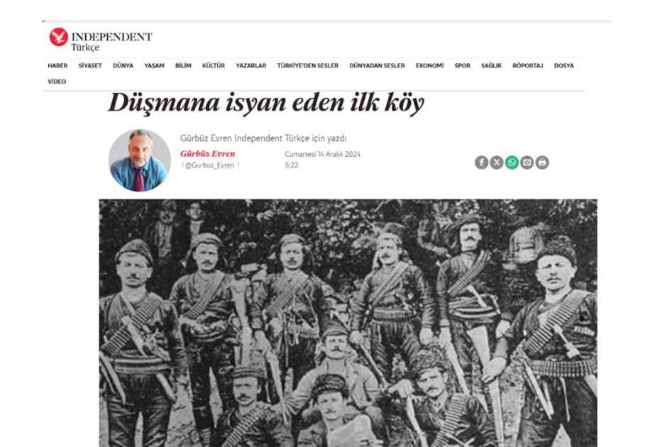 “Hatay vilayəti 1918-ci il oktyabrın 30-da Mudros barışıq müqaviləsi şərtlərinə əsasən Fransanın nəzarətinə keçən bir çox vilayətdən biridir. Dörtyolun işğalını gerçəkləşdirən fransız qüvvələri 400 erməni əsgərindən ibarət bir batalyon idi. Yaxın Şərq ölkələrindən buraya minə qədər erməni köçürüldü və onlar yerli əhaliyə qarşı zorakılıq etməyə başladılar. Özerli kəndinin sakinləri ilk olaraq qiyam qaldırdılar və evlərini qarət edən iki ermənini öldürdülər”, – deyə türkiyəli analitikin məqaləsində deyilir.