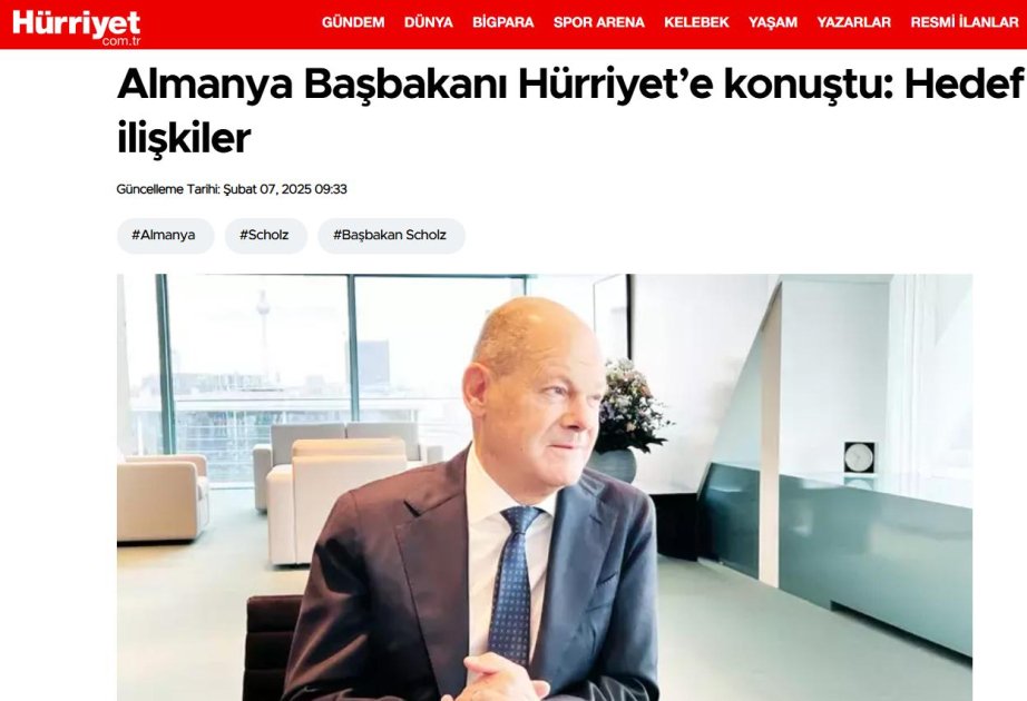 Ankaranın Avropa İttifaqı ilə münasibətlərinə toxunan O. Şolts tərəflər arasında bir çox ziddiyyətlərin aradan qaldırılması üçün şəxsən əlindən gələni etdiyini bildirib. O deyib: “Biz Prezident Rəcəb Tayyib Ərdoğanla sıx əlaqə saxlayırıq və ölkələrimizi narahat edən məsələləri tez-tez müzakirə edirik. Bu mərhələdə Türkiyə ilə Avropa İttifaqı arasında münasibətlərin yaxşılaşdırılması çox vacibdir. Mən bunun üçün çalışıram”.