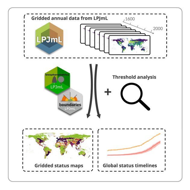 Tədqiqatda 1600-cü ildən başlayaraq hər gün daxil olan su, karbon və azot axınını simulyasiya edən qlobal biosfer modelindən istifadə edilib. Məlumatlara görə, ekosistemlərdə həyəcanverici dəyişikliklər hələ XVII əsrdə orta enliklərdə qeydə alınıb və 1900-cü ilə qədər sənayeləşən torpaqların 37%-ni yerli zərərli zonadan kənara, 14%-ni tam risk zonasına çıxarıb. Bu gün bu rəqəmlər kənd təsərrüfatına köməklik olaraq 60% və 38%-ə yüksəlib.
