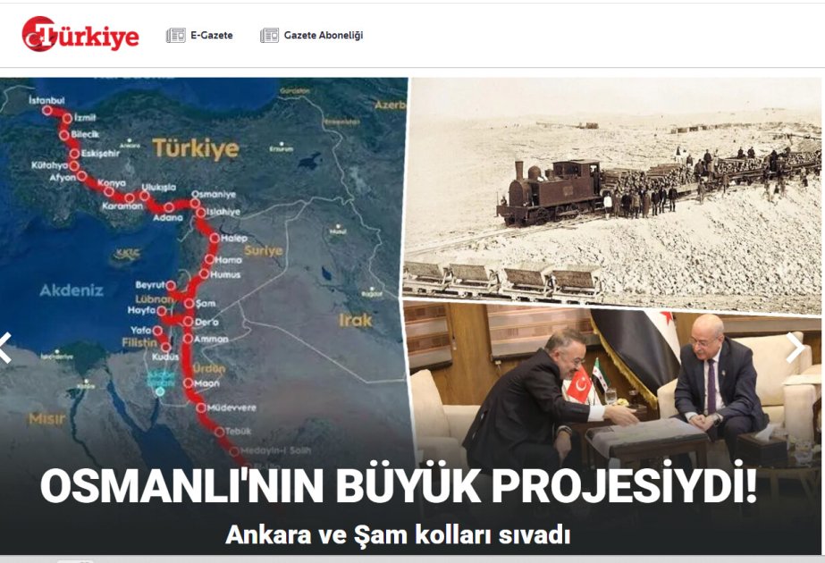 AZƏRTAC “Türkiye” qəzetinə istinadla xəbər verir ki, Hicaz dəmir yolunun bərpası Türkiyənin Dəməşqdəki səfiri Nuh Yılmaz və Suriyanın nəqliyyat naziri Yarub Bədir arasında keçirilən görüşün gündəliyində duran əsas məsələ olub.