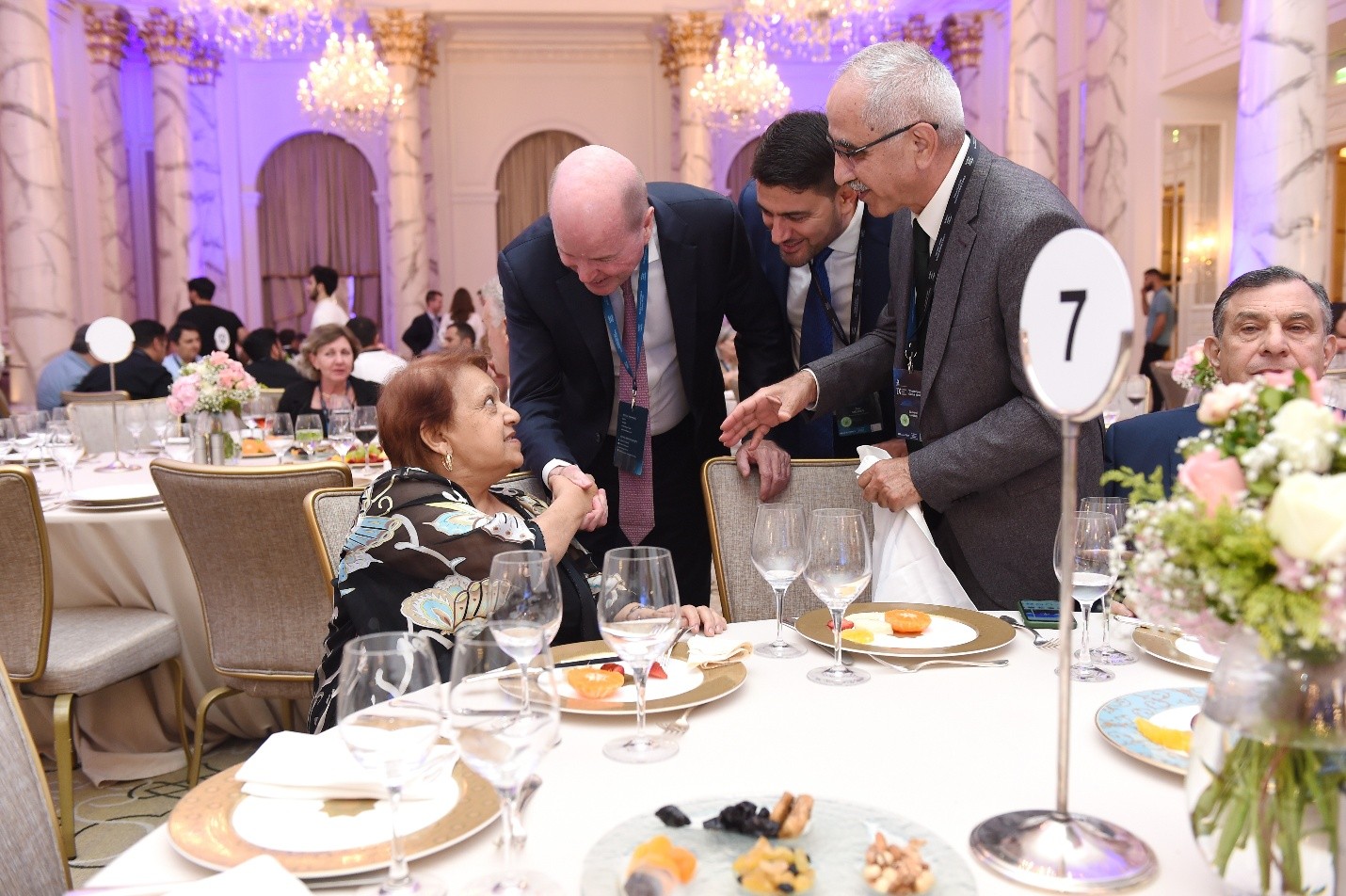 Gary Jones, bp’s Regional President for Azerbaijan, Georgia and Türkiye, warmly approaches Professor Hasanzade to personally congratulate her and engage in a lively discussion about the collection of miniatures