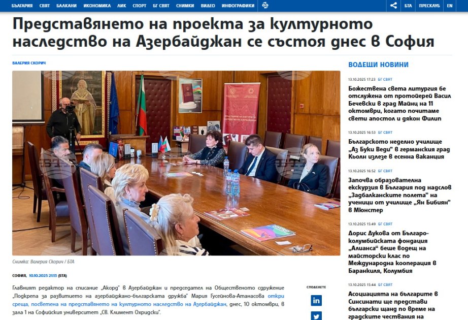 The Sofia University, named after St. Kliment Ohridski, hosted a roundtable themed "Presentation of the Cultural Heritage of Azerbaijan in Bulgaria."