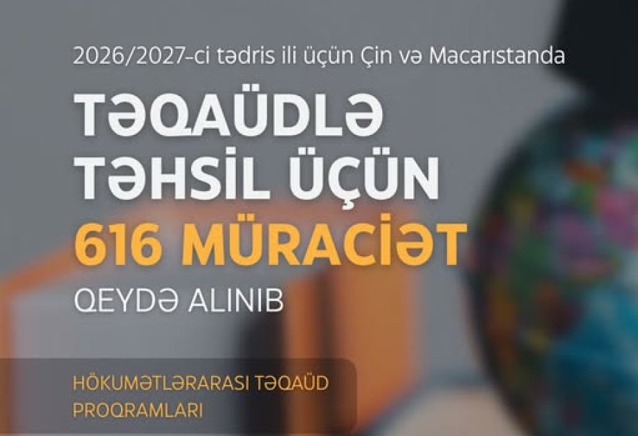 According to the State Agency for Science and Higher Education, a total of 616 e-applications, including 162 for China and 454 for Hungary, were registered via the portal.edu.az platform. Of them, 86 candidates applied for bachelor's degrees, 457 for master's degrees, and 73 for PhD.