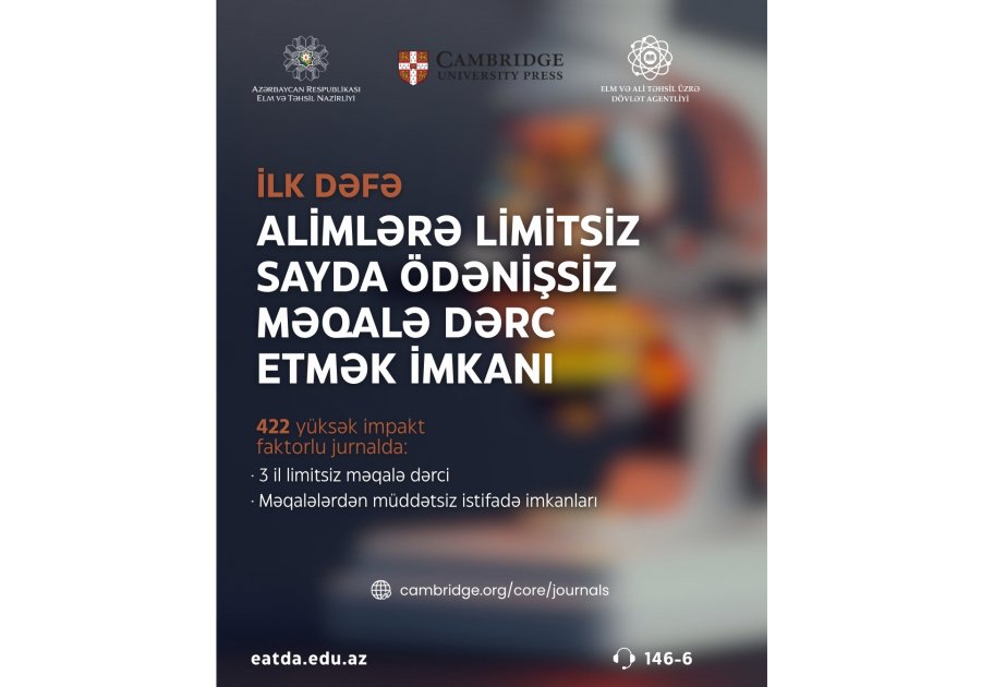 Under the new agreement between Azerbaijan’s Ministry of Science and Education and Cambridge University Press, scholars affiliated with Azerbaijani higher education and scientific institutions can publish an unlimited number of articles free of charge over the next three years in 422 high-impact and open-access journals.