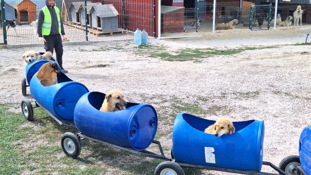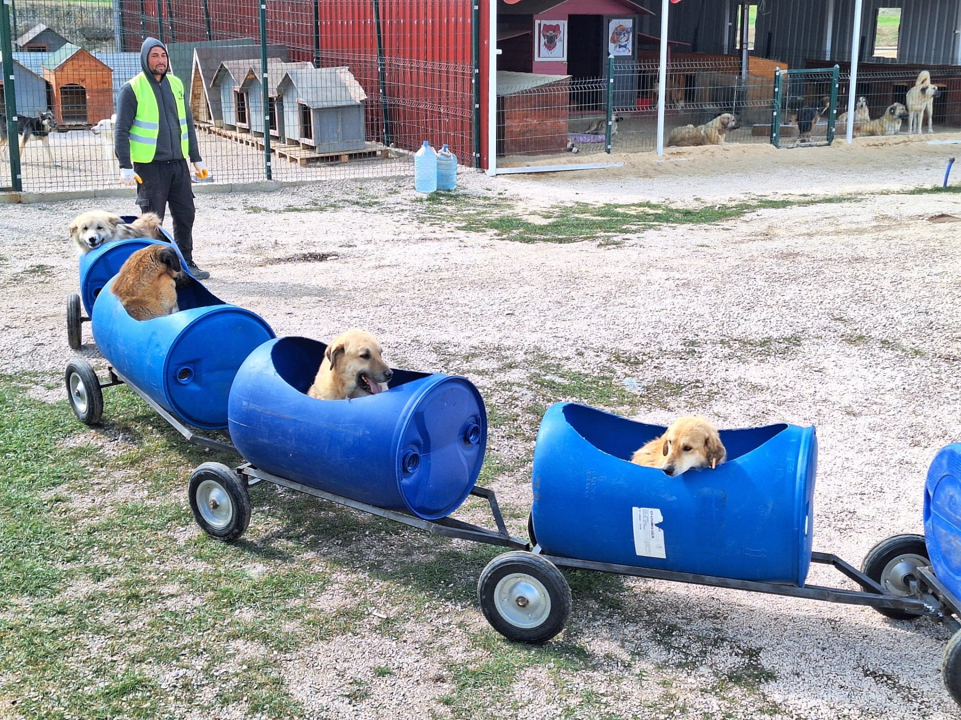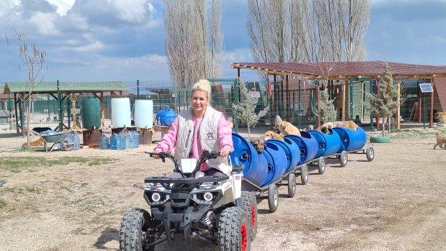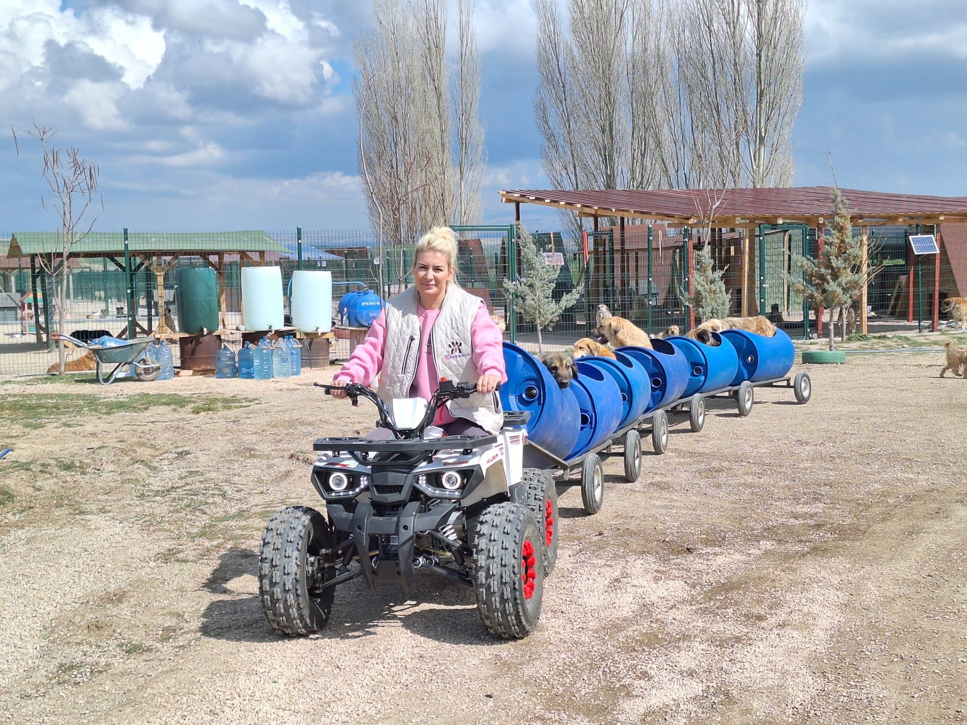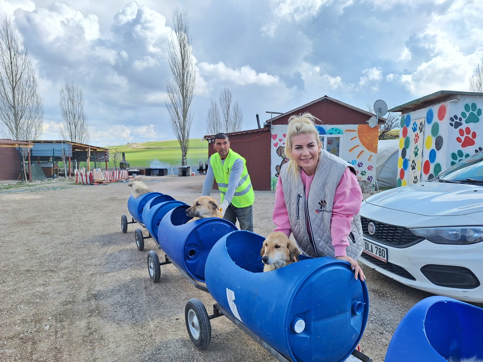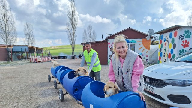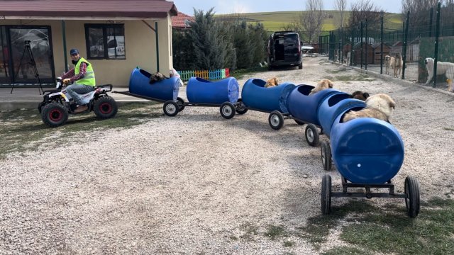 Buket Özgünlü founded the Paws for Life Association 11 years ago after she started feeding stray animals. Özgünlü, who is the president of the association, was affected by her father's stroke due to a blood clot in his brain and founded the Yaşapati Dog Nursing Home for disabled animals in Oyaca village in Gölbaşı district. Özgünlü cares for disabled dogs brought from Ankara and different provinces. Supported by animal lovers, Özgünlü has now built a train out of empty barrels for disabled dogs. Özgünlü takes the animals, which have difficulty walking due to various disabilities, on a 6-car train pulled by an ATV motorcycle every day and takes them for a ride. Citizens in the neighborhood also show interest in the train with a dog in each wagon.