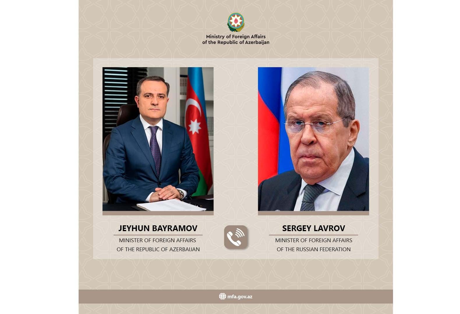 BAKU, Azerbaijan, July 21. Minister of Foreign Affairs of Azerbaijan Jeyhun Bayramov has held a phone talk with his Russian counterpart Sergey Lavrov, Trend reports.