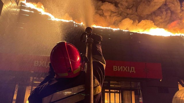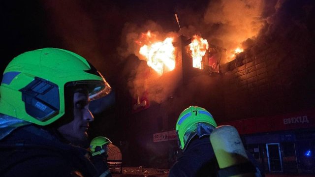 The service shared the moments of intervention to the fire that broke out in the supermarket after the attack.