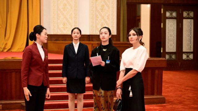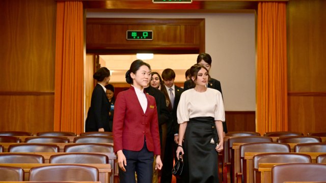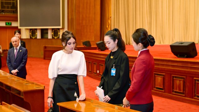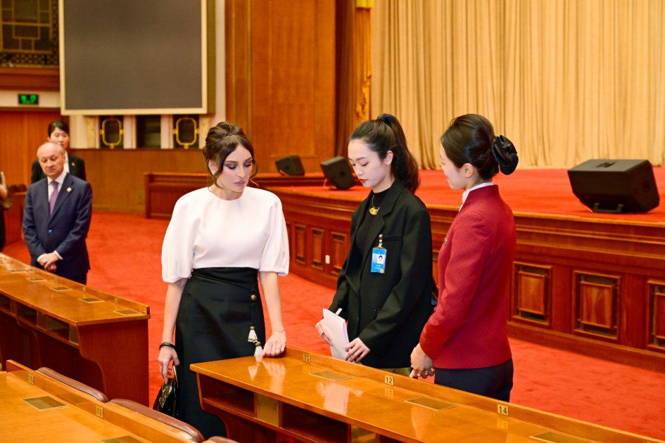 On April 23, First Lady of the Republic of Azerbaijan Mehriban Aliyeva, her daughter Leyla Aliyeva, and other family members visited the Great Hall of the People in Beijing, Trend reports.
