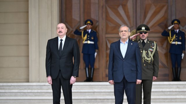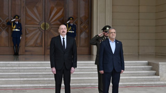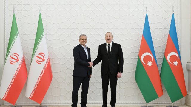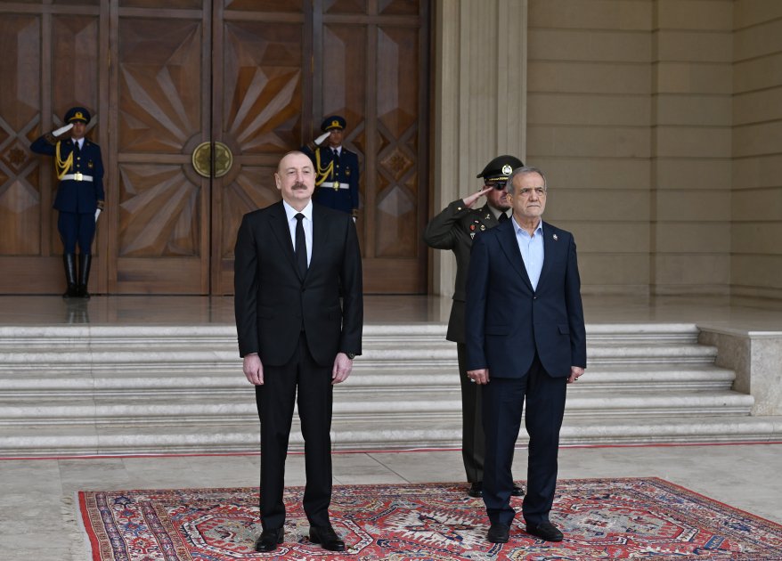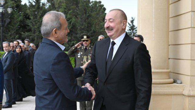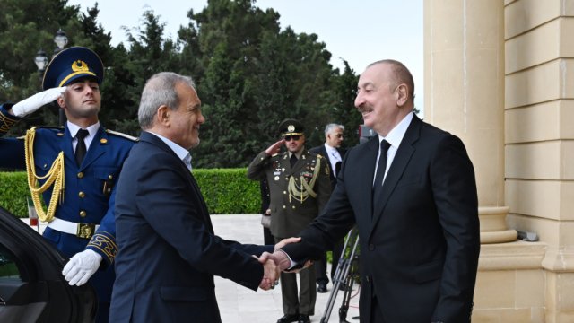 President of Azerbaijan Ilham Aliyev welcomed President of Iran Masoud Pezeshkian.