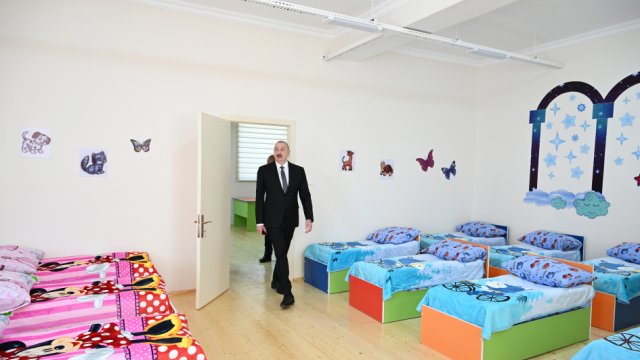 President Ilham Aliyev then inaugurated a new nursery-kindergarten in the village of Kangarli.