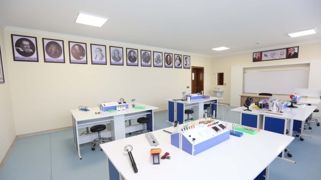 The educational institution was provided with the necessary furniture and equipment, classrooms and laboratories were equipped with visual aids, the school yard was landscaped, and modern lighting systems were installed.