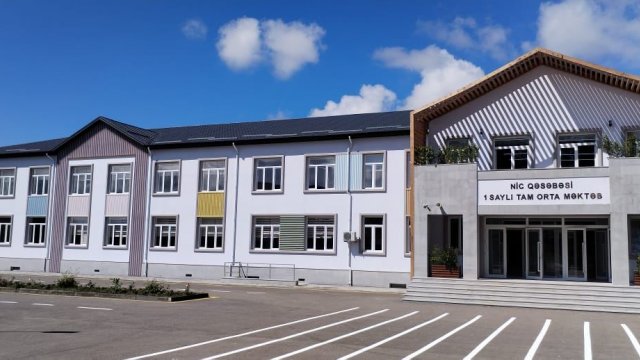 Another of the Fund's projects was related to education in the Gabala region. At the initiative of the Heydar Aliyev Foundation, the building of secondary school No. 1 was built and put into operation in the Nij village of Gabala region.