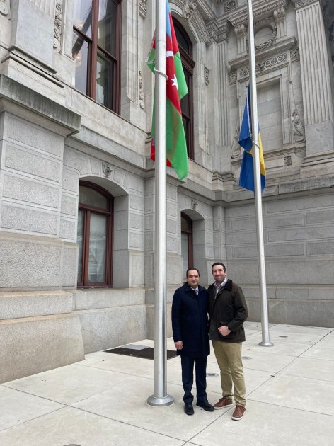 As part of the "Year of Constitution and Sovereignty," the national flag of Azerbaijan was raised in front of the Philadelphia City Hall.