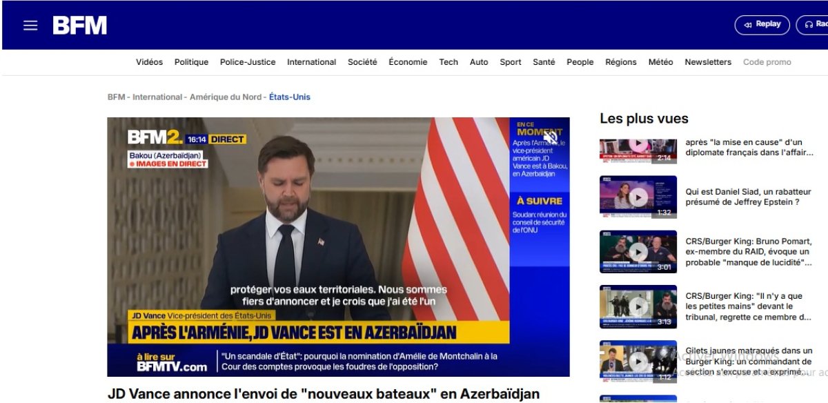 French news portals, television channels and radio stations have widely covered the visit of U.S. Vice President JD Vance to Baku and his meeting with President of Azerbaijan Ilham Aliyev.