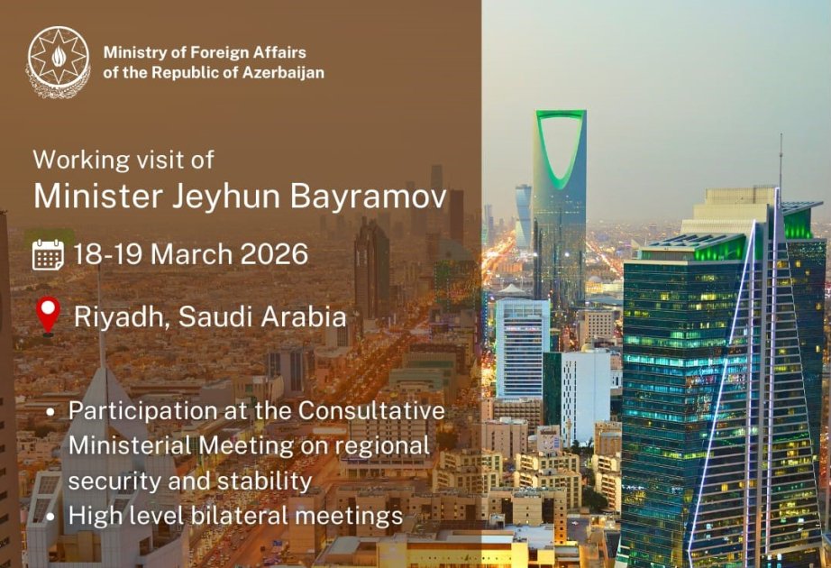 As part of the trip, FM Bayramov will attend Consultative Ministerial Meeting on regional security and stability, as well as hold high-level bilateral meetings.