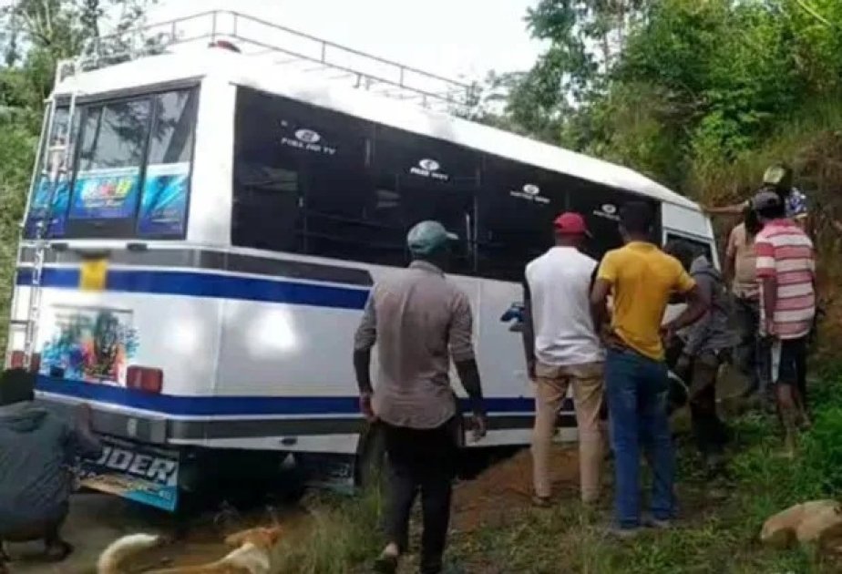 At least 34 schoolchildren were hospitalized on Tuesday after a privately owned bus transporting them to schools in Sri Lanka's Central Province met with an accident, Xinhua reported.