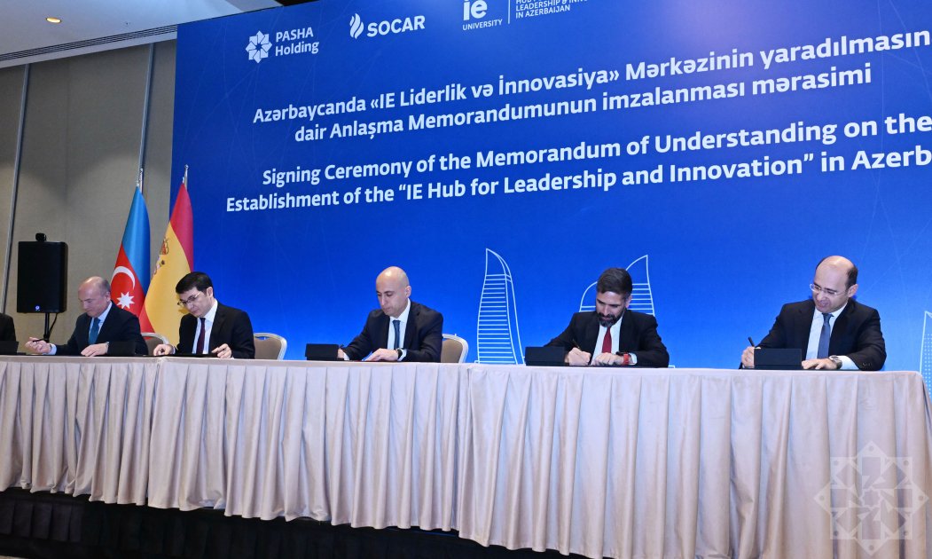 The MoU was inked by Emin Amrullayev, Azerbaijan’s Minister of Science and Education; Elnur Aliyev, First Deputy Minister of Economy; Rovshan Najaf, President of the State Oil Company of Azerbaijan (SOCAR); Jalal Gasimov, CEO of PASHA Holding LLC, and Santiago Iñiguez de Onzoño, President of IE University of Spain.