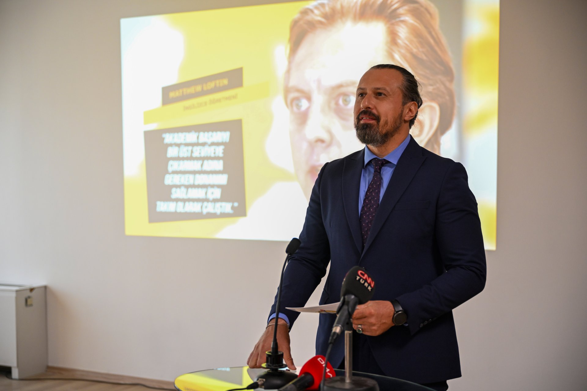 Okul Müdürü Atila Ertoğan ise, "Bugün geldiğimiz noktada henüz yolun başında olmamıza rağmen gönül rahatlığıyla söyleyebilirim ki emin adımlarla ilerliyoruz. Eminim ki sizler ülkesine ve dünyaya güzel eser ve izler bırakacaksınız. Çağın gereksinimlerini bilerek geleceği anlamaya çalışan bir bakış açısıyla teknolojinin tüm nimetlerinden yararlanarak sorgulayan, kültürler arası etkileşimi önemseyen, iş birliğine açık, eleştirel ve analitik düşünebilen dünya vatandaşları yetiştirmeyi hedefliyoruz. Gazi Mustafa Kemal Atatürk'ün de belirttiği gibi sizler bizim ikbal ışığımızsınız. Bunu bilerek Gazi'nin gösterdiği hedef için hep birlikte çalışacağız" diye konuştu.