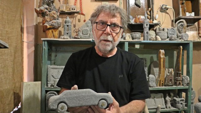 Emekli Fransızca öğretmeni, bu kez de Karacadağ taşından araç figürleri yaptı