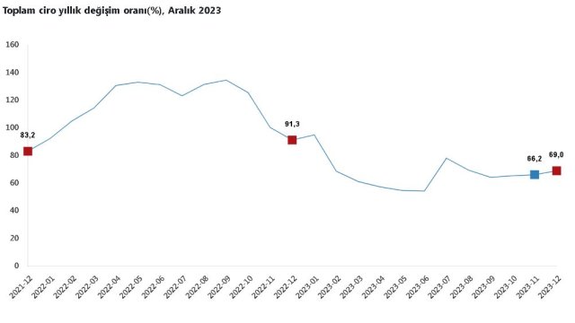 TÜİK: Toplam ciro aralıkta yüzde 69 arttı