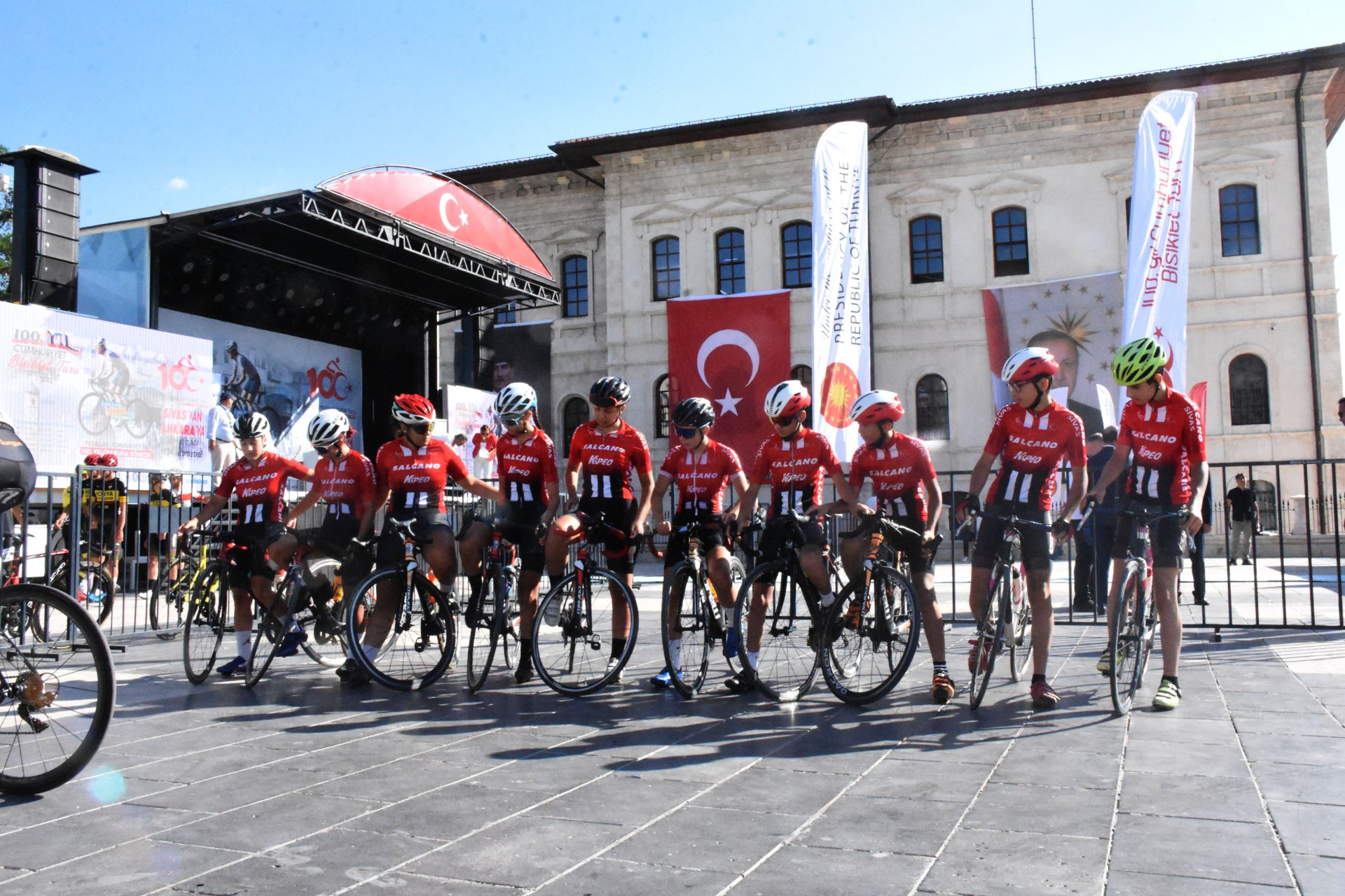 Cumhuriyetin 100. yılı onuruna düzenlenen tur, Sivas Atatürk ve Kongre Müzesi önünden start aldı. Tura katılan bisikletçiler sahneye çıkarak katılım panosunu imzaladı ve takım halinde fotoğraf çektirdi. 16 takımdan 100 sporcunun katıldığı tur 5 gün sürecek. Sivas, Amasya, Havza, Samsun, Çorum, Çankırı üzerinden Ankara'ya pedal çevirecek bisikletçiler, yarışı 5 Ağustos Cumartesi günü Birinci Türkiye Büyük Millet Meclisi'nde tamamlayacak. Etap birincisinin taşıyacağı Türk bayrağı, Ankara'da TBMM Başkanlığına teslim edilecek. Düzenlenen törende konuşan Sivas Valisi Yılmaz Şimşek, Sivas'ın Gazi Mustafa Kemal Atatürk ve silah arkadaşlarına 108 gün ev sahipliği yapan, cumhuriyetin temellerinin atıldığı önemli bir şehir olduğunu söyledi.