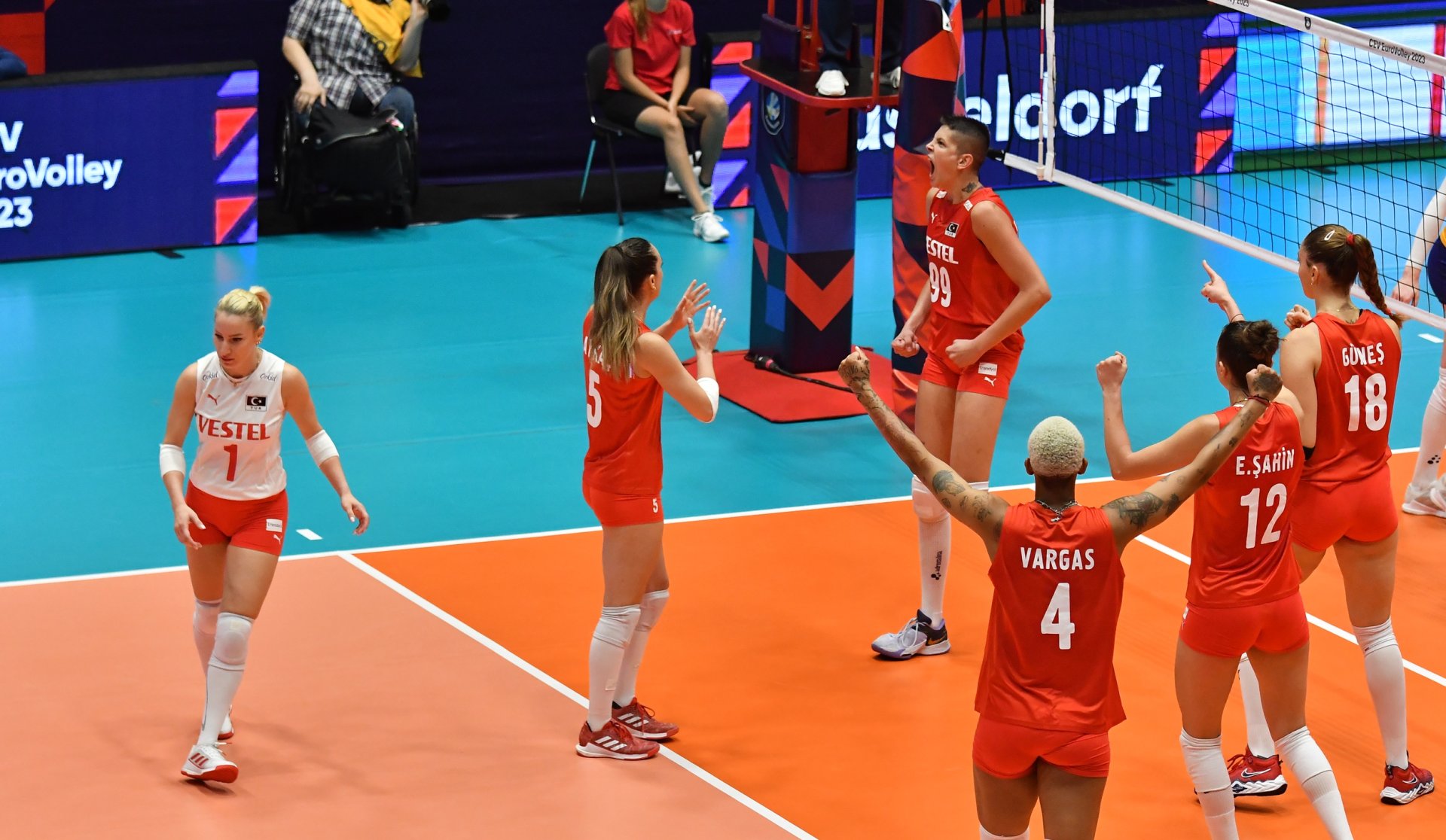 Almanya’nın Düsseldorf kentinde oynanan mücadeleyi TVF Başkanı Mehmet Akif Üstündağ ve TVF Sağlık ve Dopingle Mücadele Kurulu Başkanı Prof. Dr. Ufuk Demirkılıç da izledi.