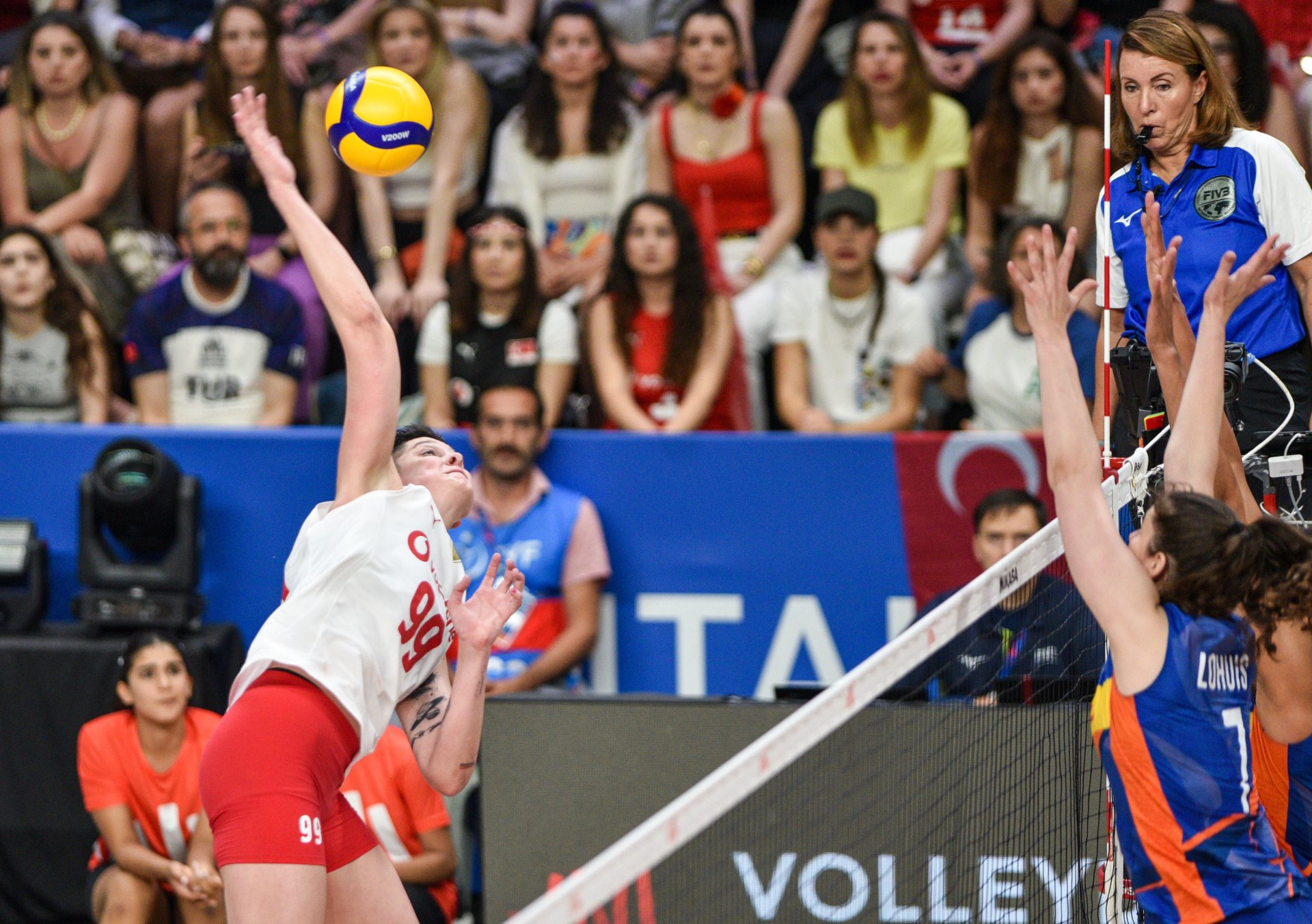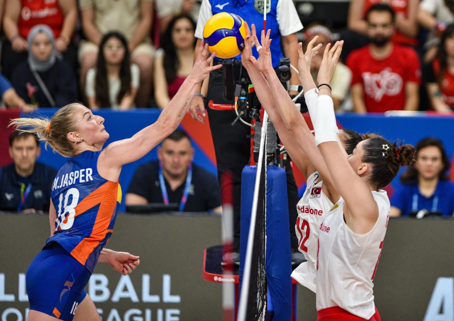 A Milli Kadın Voleybol Takımı, Voleybol Milletler Ligi’nin Antalya etabındaki ikinci maçında Hollanda ile karşılaştı. Antalya Spor Salonu’nun tamamını dolduran seyirciler müsabaka boyunca ay-yıldızlılara destek oldu. Karşılaşmaya iyi başlayan Filenin Sultanları ilk seti 11 sayı farkla 25-14 kazandı. İkinci set Hollanda’nın baskısıyla başladı. Ancak Filenin Sultanları bu sette de 6 sayı öne geçse de üstünlüğünü koruyamadı ve seti 25-23 kaybetti.