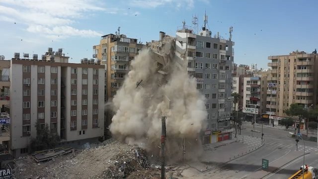 Şanlıurfa’da ağır hasarlı 10 katlı bina kontrollü yıkıldı