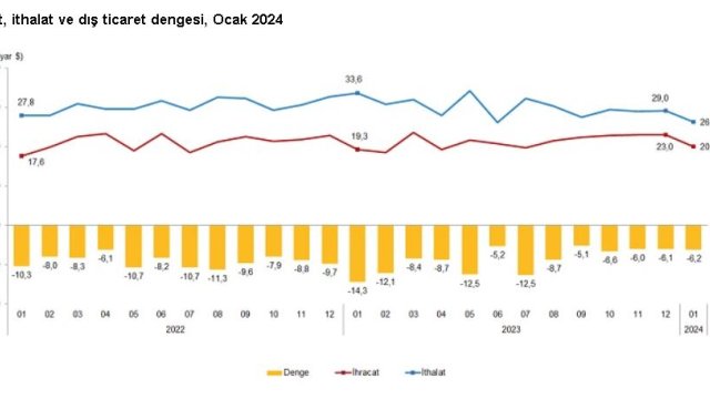 TÜİK: Ocakta ihracat arttı, ithalat azaldı