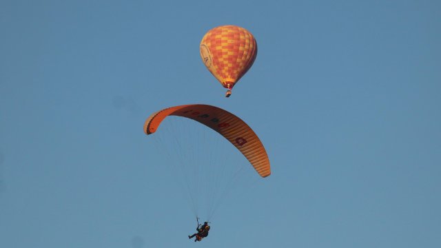 Uçak yerine sıcak hava balonlarından atlayış yaptılar