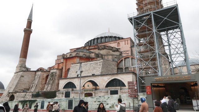 Ayasofya'da çatlak tespit edilen 2. Bayezid minaresinde çalışma