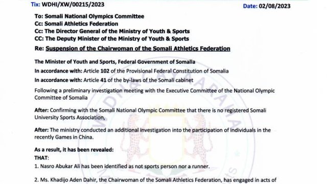 Somali’de Atletizm Federasyonu Başkanı görevden alındı