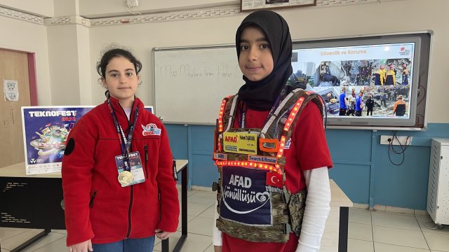 Van'ın Bahçesaray ilçesinde 2020'de yaşanan ve 42 kişinin hayatını kaybettiği çığ faciası ile 6 Şubat'taki Kahramanmaraş merkezli depremlerden etkilenen Mevlana İmam Hatip Ortaokulu 6'ncı sınıf öğrencileri Betül Yıldırım ile Nudem Taşkesen, arama-kurtarma ekipleri için 'akıllı yelek' geliştirdi. Öğrenciler, akıllı yeleği, Türkçe öğretmenleri Ferhan Ulu eşliğinde 5 ay boyunca çalışıp, 2 bin TL'ye mal etti. Proje, aynı zamanda Teknofest'te 'İnsanlık Yararına Teknoloji Yarışması-Afet Yönetimi' kategorisinde Türkiye birincisi oldu. Başta AFAD olmak üzere afetlere müdahale eden ekiplerin giymesi için tasarlanan akıllı yelek, personele ilişkin bilgi veriyor. Yeleği giyen bir personelin 3 dakika hareketsiz kalması durumunda, uyarı sistemi devreye giriyor. 3 kilogram ağırlığındaki yelekte; otomatik aydınlatma sistemi, hayati organları korumak için metal plaka, tehlikeli gazlara karşı gaz sensörü, şarj işlemleri için 12 bin miliamper batarya sistemi, iletişim ve koordinasyon için uzaktan çalışan renkli sistem ile kaza ve baygınlık durumunu algılayan ikaz sistemi bulunuyor.
