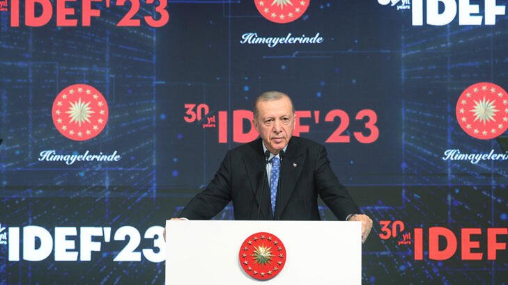 Cumhurbaşkanı Recep Tayyip Erdoğan, İstanbul TÜYAP Fuar ve Kongre Merkezi'nde 25 Temmuz'da başlayan IDEF'23 16'ncı Uluslararası Savunma Sanayii Fuarı'nın kapanış törenine katıldı. Kapanış töreninde Cumhurbaşkanı Erdoğan'ın yanı sıra TBMM Başkanı Numan Kurtulmuş, Milli İstihbarat Teşkilatı Başkanı İbrahim Kalın, Milli Savunma Bakanı Yaşar Güler, Sanayi ve Teknoloji Bakanı Mehmet Fatih Kacır, çok sayıda bakan, milletvekili ve konuk ülkelerden yetkililer yer aldı. Savunma, güvenlik, denizcilik, havacılık ve uzay sanayisi alanlarında doğrudan ya da dolaylı olarak faaliyet gösteren yerli ve yabancı yaklaşık bin firmanın katıldığı fuarda konuşan Cumhurbaşkanı Erdoğan, "Çifte standardın, adaletsizliğin ahde vefasızlığın daniskasını yaşadık ama bunlar karşısında yılmadık, pes etmedik, yolumuzdan asla dönmedik. Kendi göbeğimizi kendimiz kesmek zorunda olduğumuzu hiçbir zaman aklımızdan çıkarmadık. Her zaman şu inançla olduk. Korkaklar, zafer anıtı dikemez" ifadelerini kullandı.